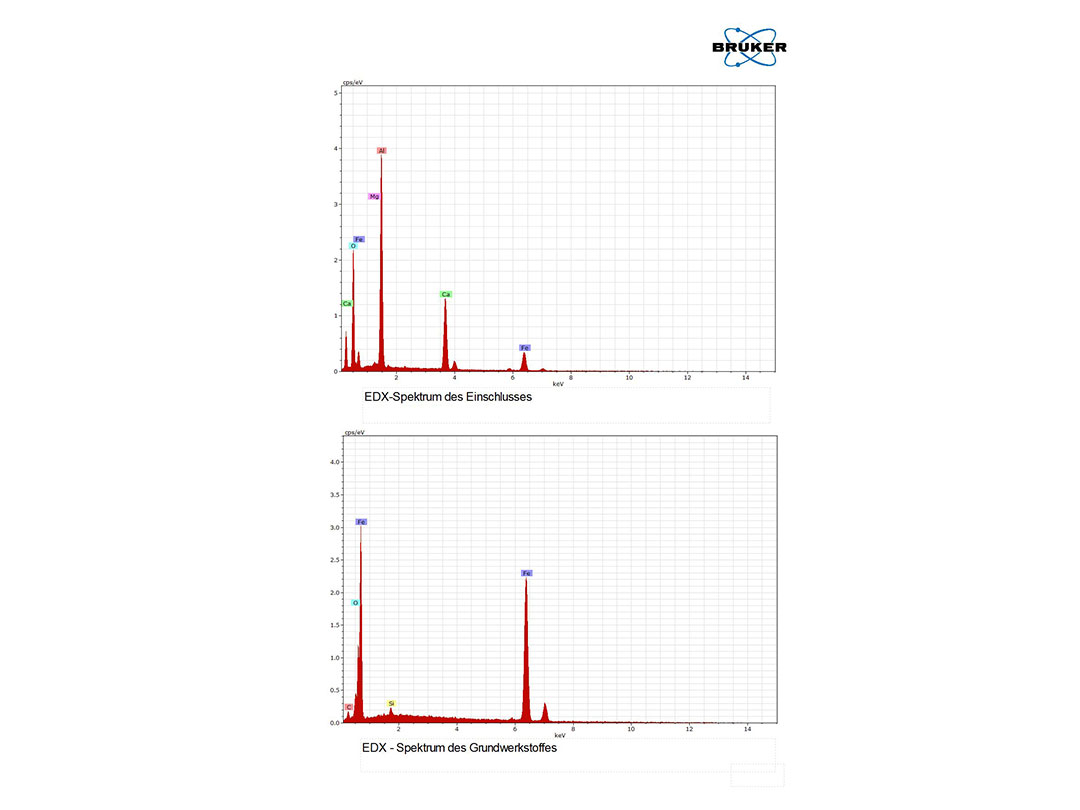 - EDX-Analysen (standardfreie Punkt- und Stoffanalysen)